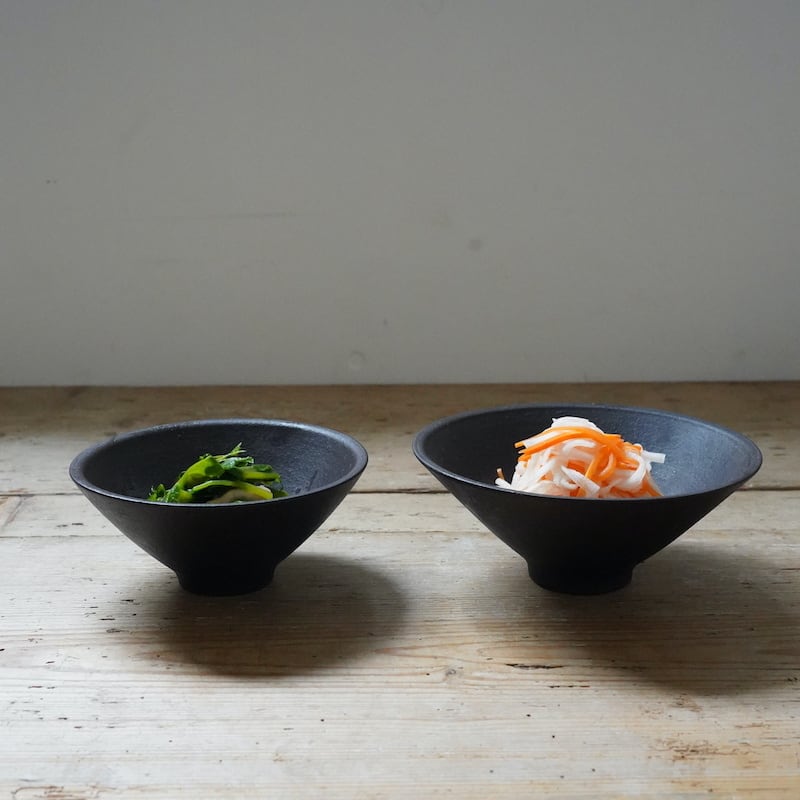 幅広の縁とざらっとした質感で、ニュアンスのある食卓がつくれます。