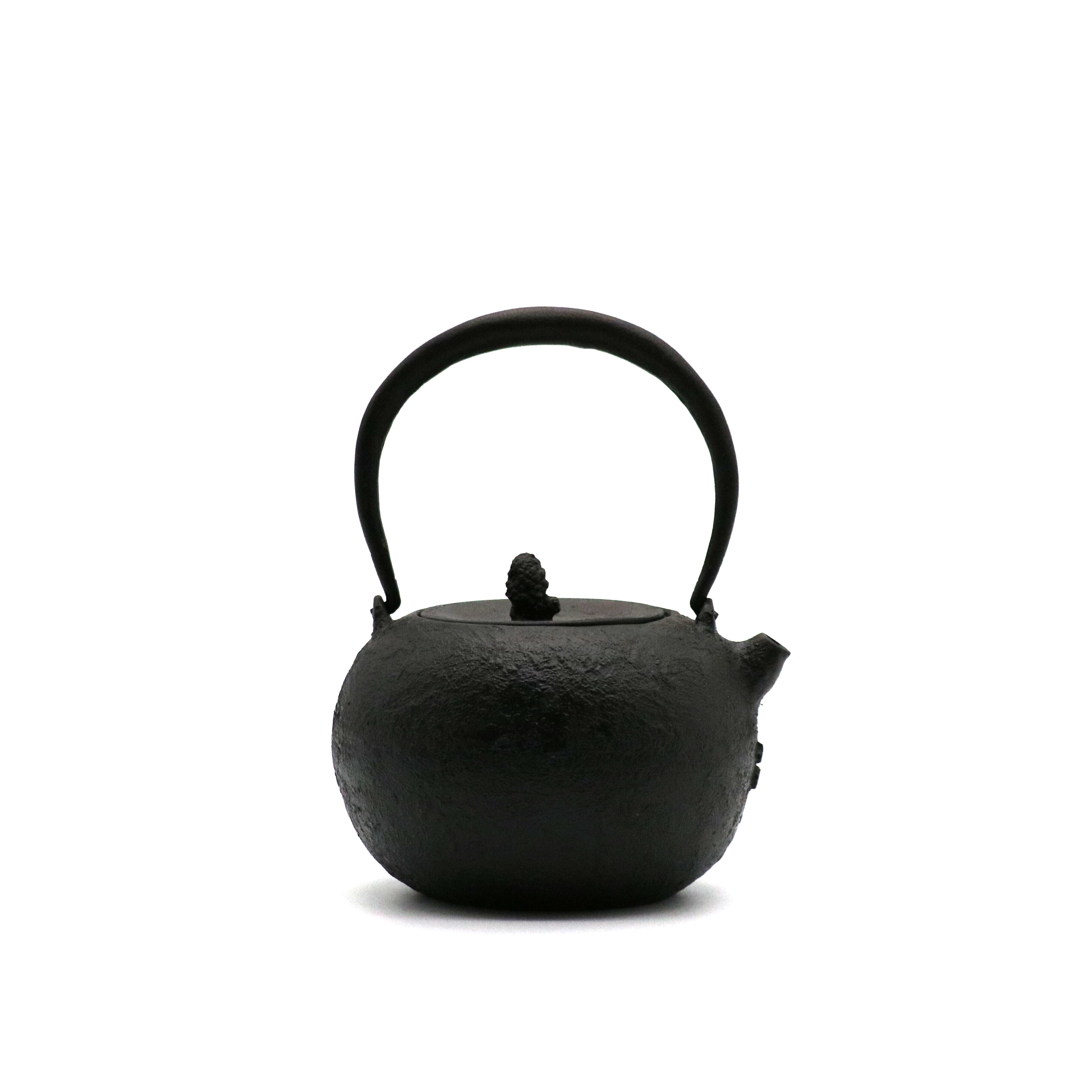 できるだけ丸い形にこだわった鉄瓶。丸は無限を表す縁起の良い形です。